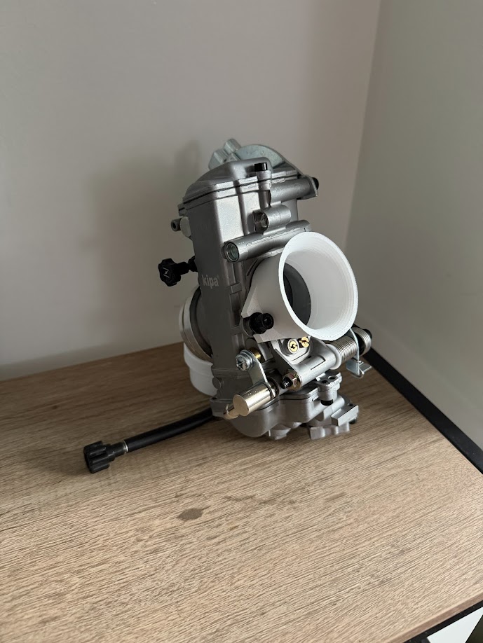 Custom adapter designed to maintain the factory velocity stack profile while fitting an aftermarket carburetor. Driven by interface measurements, modeled in CAD, and validated through physical fitment.